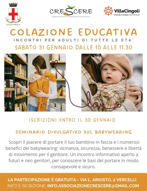 Il Centro Famiglie apre le porte, insieme all’ Associazione Crescere, ad una mattina speciale pensata per accogliere futuri e neo genitori in un clima sereno, accogliente e ricco di scoperte. Il tema dell’incontro è il babywearing, una pratica che unisce dolcezza, contatto e libertà di movimento, creando un legame profondo tra genitore e bambino.
